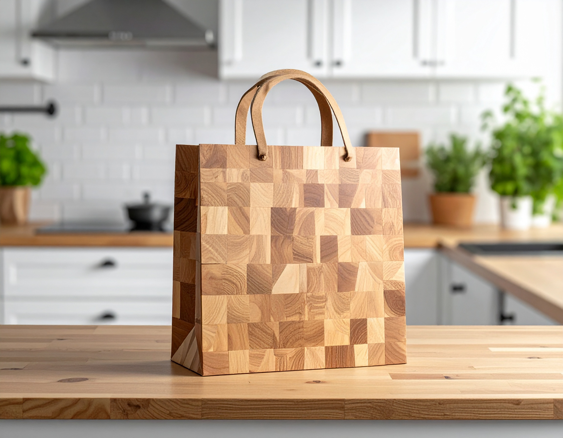 We've all been there: feeling a rip in our paper grocery bags and running to the door to make it before it falls apart, only to have the handles give way and the groceries spill just as you take your keys out. Fear not, I have created shopping bags that sacrifice all function in the name of indestructibility. These bags are made of strong, durable materials like tile, stone, metal, wood, and marble. They are monstrously heavy and completely rigid, but will never break and spill your groceries.